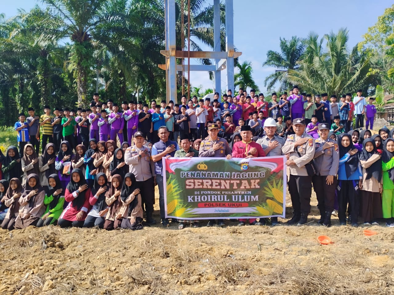Kegiatan yang dimulai sejak pukul 10.00 WIB ini mengambil lokasi di lahan seluas 0,5 hektare milik dan dikelola langsung oleh Ponpes Khoirul Ulum. Penanaman dilakukan secara simbolis oleh Kapolsek Ukui AKP Rudi Hardiyono, SH, bersama jajaran, pengasuh ponpes KH. Khundori, dan perwakilan perusahaan PT. Indosawit, disaksikan oleh para santri dan tokoh masyarakat setempat.