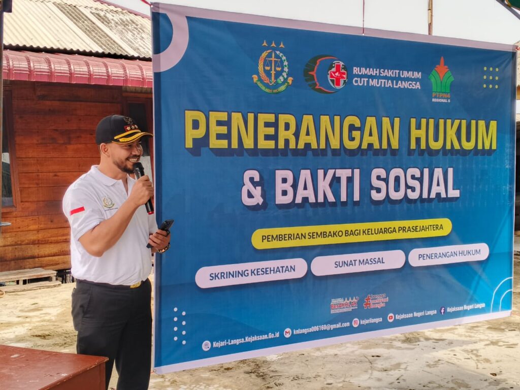 Kota Langsa – Dalam serangkaian HUT Adhyaksa atau Hari Bhakti Adhyaksa ke-80, Kejaksaan Negeri (Kejari) Langsa gelar sosialisasi penerangan hukum dan bakti sosial (baksos) di pulau Telaga Tujuh/Desa Pusong, Kecamatan Langsa Barat, Kamis (07/08/2025).