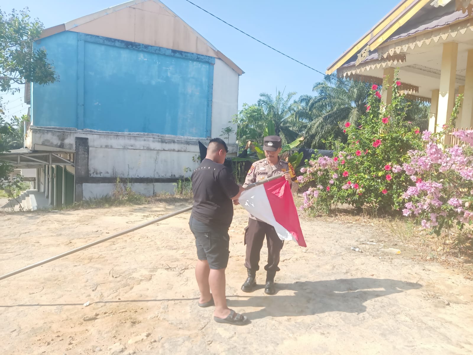 A1newsco.id | RIAU || Dalam rangka menyambut Hari Ulang Tahun (HUT) ke-80 Republik Indonesia, jajaran Polsek Pangkalan Kuras melalui Bhabinkamtibmas Desa Dundangan, Aiptu Donni SH, mengimbau warga untuk memasang bendera Merah Putih dan umbul-umbul.
