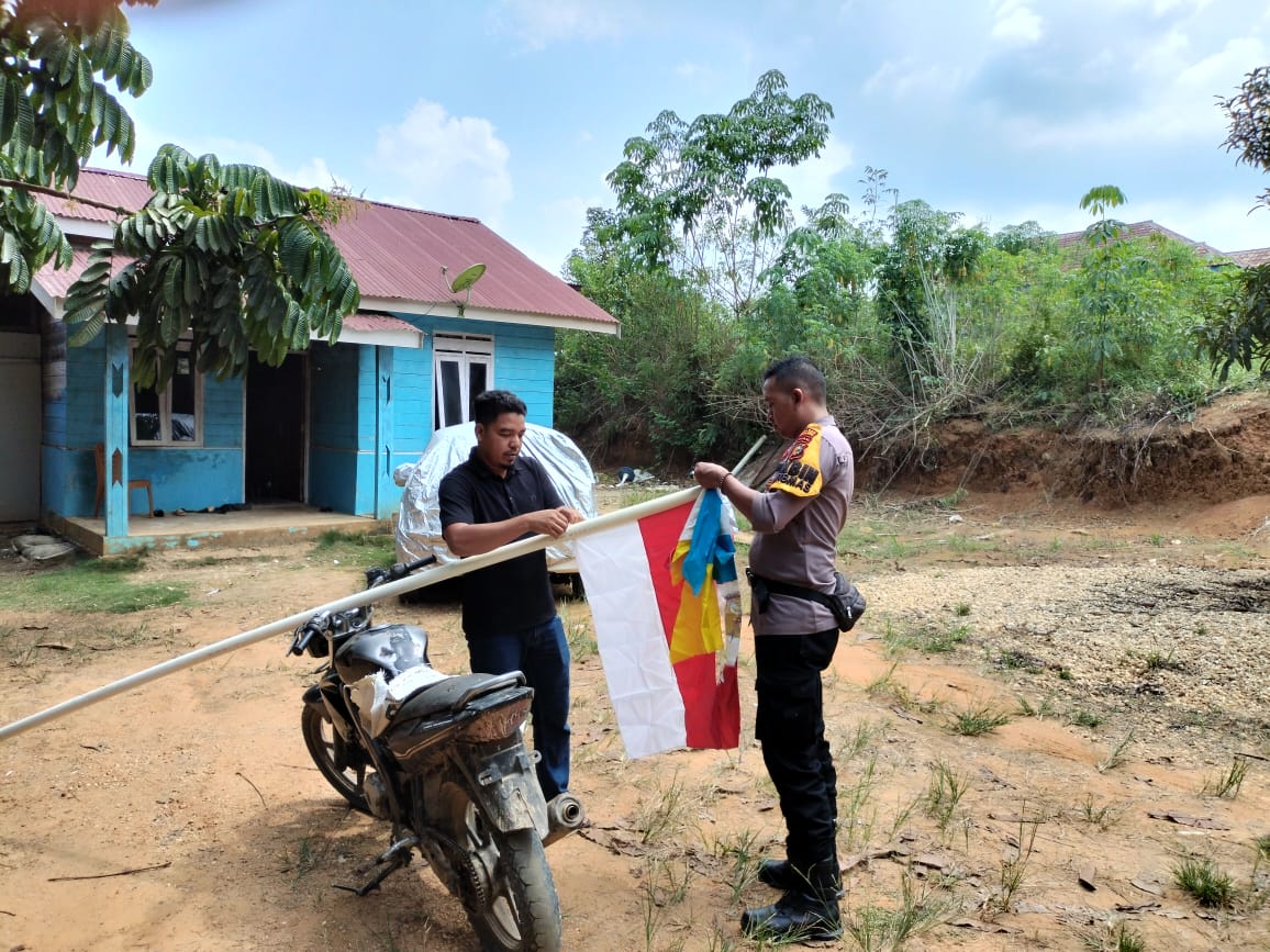A1news.co.id | RIAU || Dalam rangka menyambut Hari Ulang Tahun ke-80 Republik Indonesia, Polsek Ukui bersama masyarakat Desa Ukui Dua menggelar kegiatan pemasangan bendera Merah Putih, umbul-umbul, dan lampu hias di seluruh penjuru desa, Sabtu (9/8/2025).