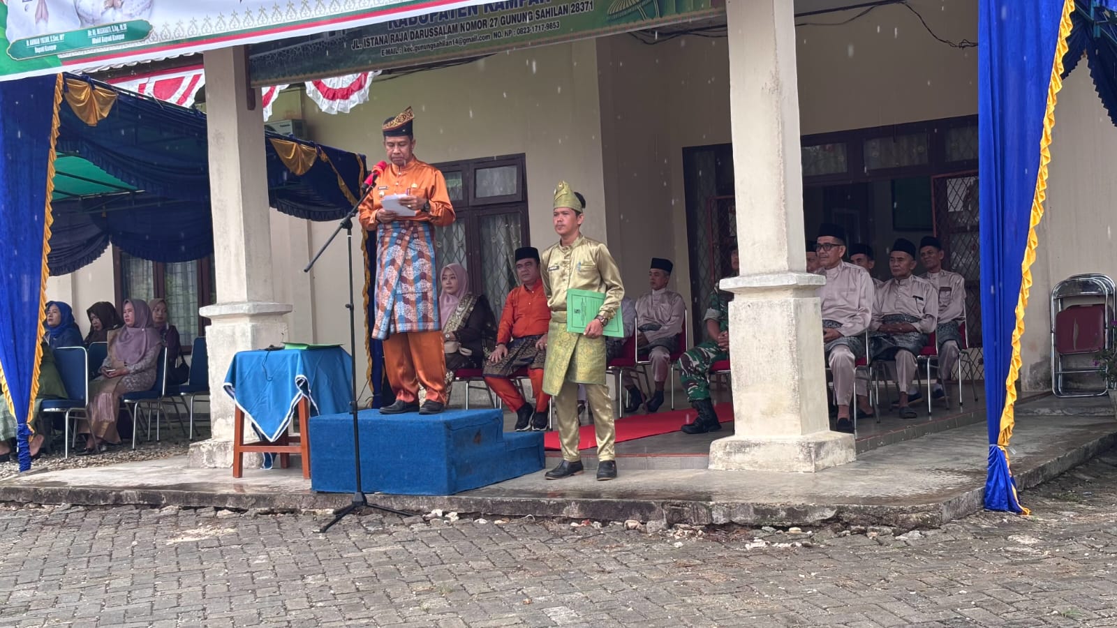 Bertindak selaku Pembina Upacara Camat Gunung Sahilan, H. Musnaini, S.Ag., M.Si, Pemimpin Upacara Saidul Tombang Pimpinan Pondok Pesantren Annizam Darussam, Perwira Upacara : Saramli, SH (Danru Pol PP) Kecamatan Gunung Sahilan.