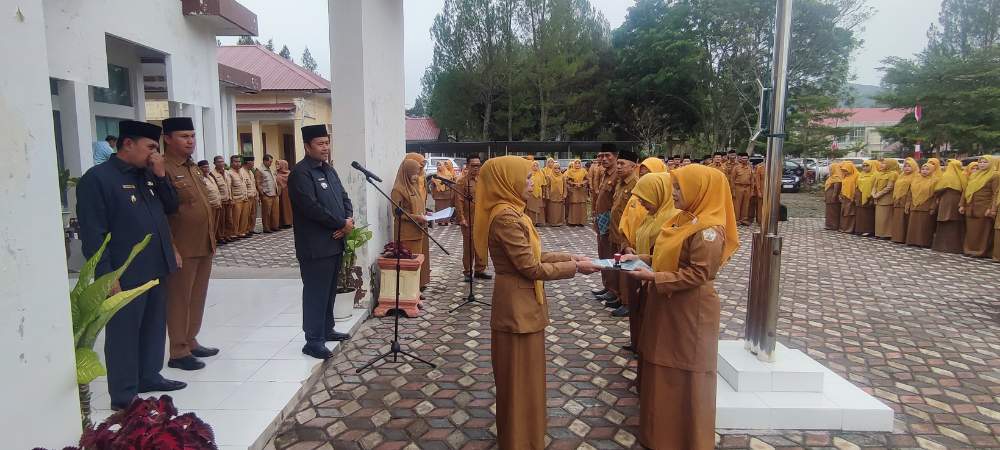 A1news.co.id|Takengon – Kepala Sekolah tersenyum, Bupati Aceh Tengah Haili Yoga pimpin apel serah terima Surat Pengantar Tugas kepada Kepala Sekolah yang dimutasi tanggal 11 Juli 2025 .