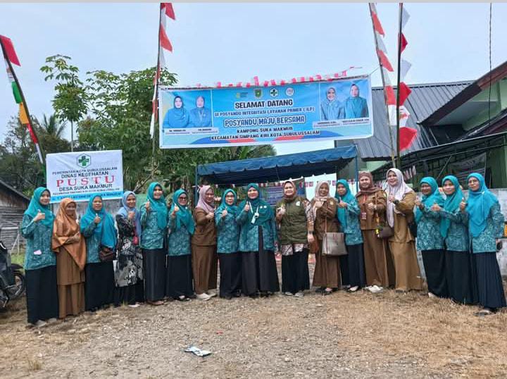 A1news.co.id|Subulussalam – Ketua Tim Pemberdayaan Kesejahteraan Keluarga (TP PKK) Kota Subulussalam menghadiri kegiatan Posyandu di Desa Suka Makmur dan melakukan pengukuhan Sekretariat TP PKK Desa Suka Makmur.
