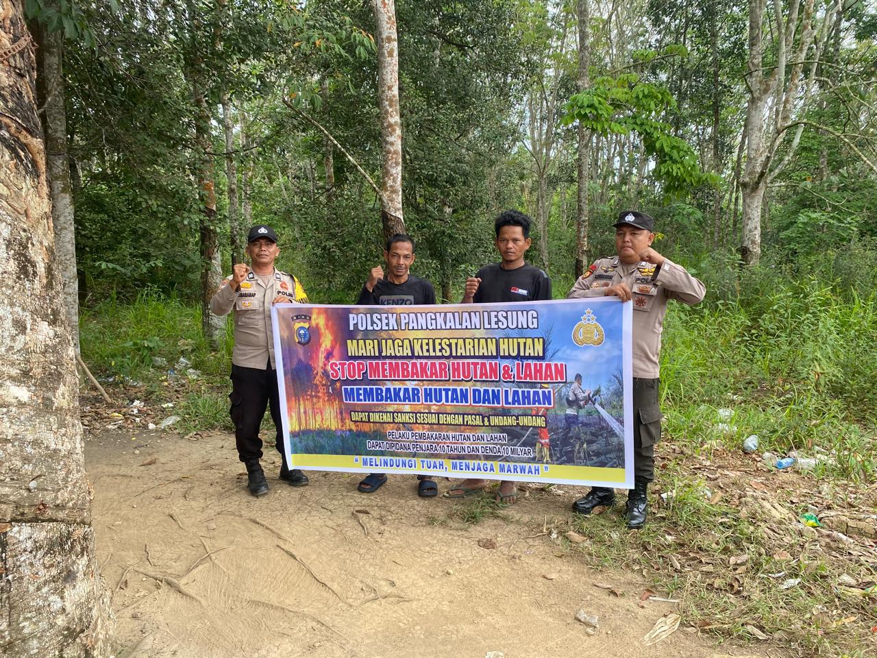 A1news.co.id | RIAU || Sebagai langkah antisipasi kebakaran hutan dan lahan (Karhutla), Polsek Pangkalan Lesung terus menggencarkan patroli di daerah rawan serta menyebarluaskan Maklumat Kapolda Riau tentang larangan membakar hutan dan lahan.