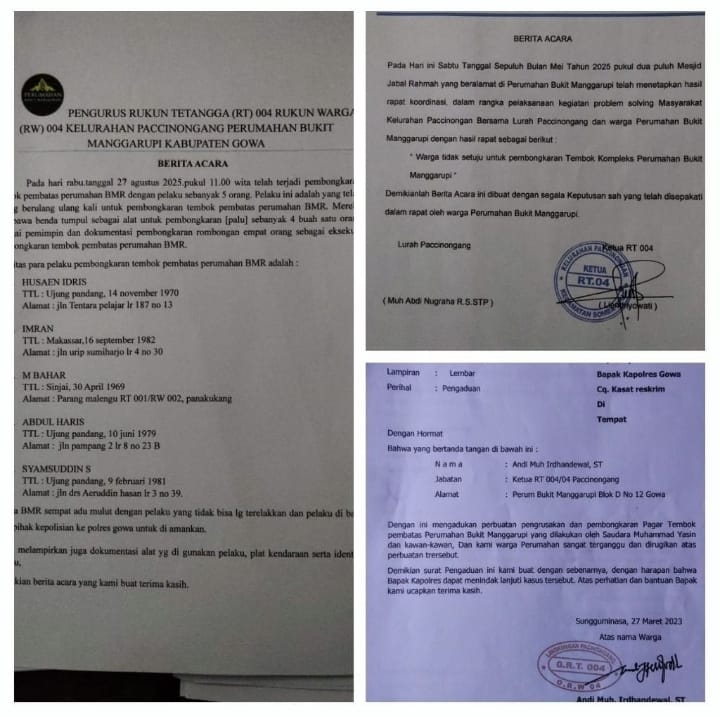 “Ironisnya” sejak awal adanya aksi percobaan pembongkaran tembok pembatas antara pemukiman warga dan kompleks, warga melaporkan kejadian tersebut ke Polres Gowa, dengan harapan aparat dapat menindak pelaku pengrusakan.