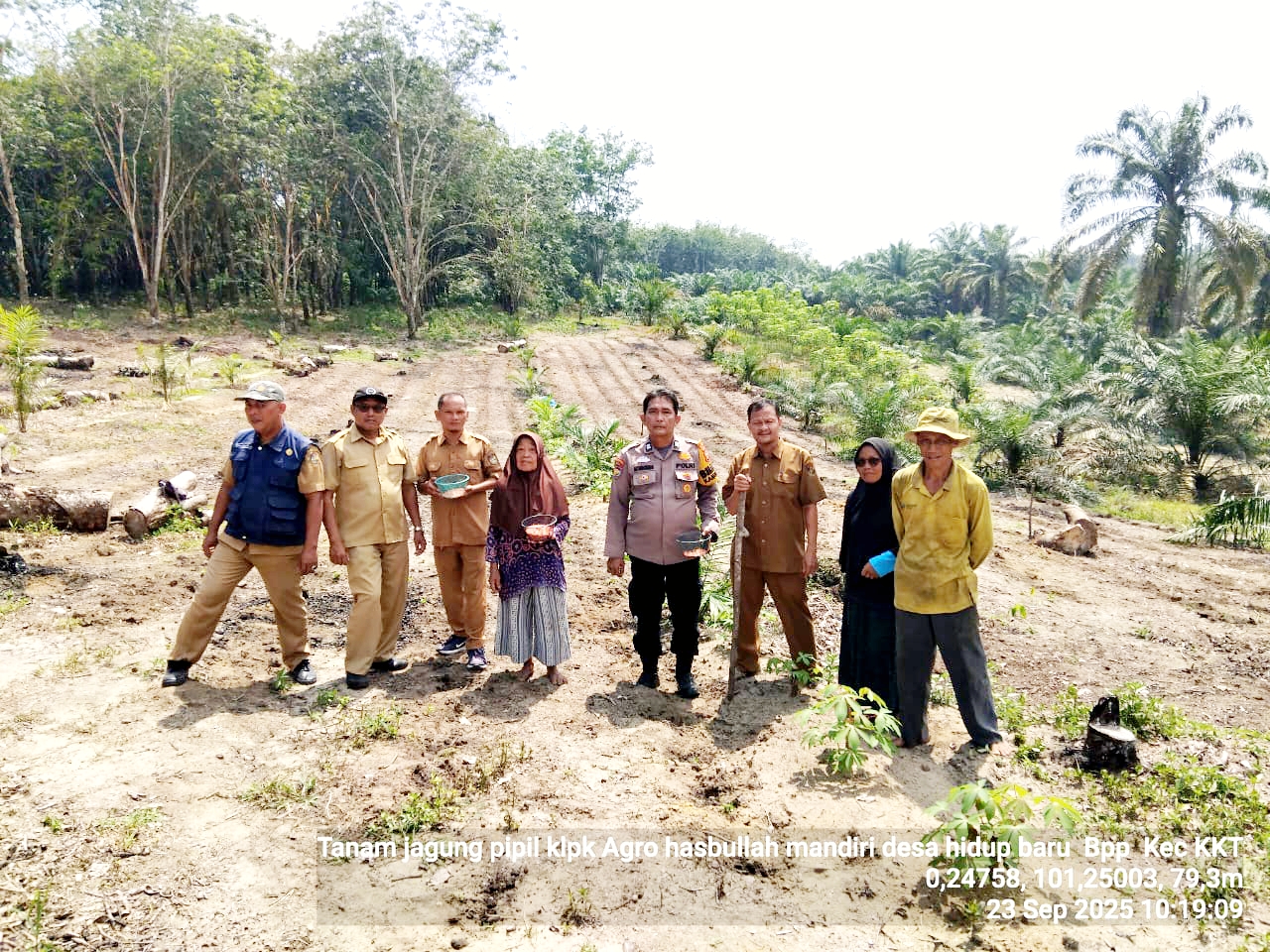 KAMPAR KIRI TENGAH,a1news.cp.id – Kapolsek Kampar Kiri Hilir IPTU Ferry Curie Ambarita yang di wakili oleh Aiptu AF. Sihotang, Bhabinkamtibmas Desa Hidup Baru Polsek KKH, menunjukkan kepeduliannya terhadap ketahanan pangan dengan turut serta dalam kegiatan penanaman jagung pipil bersama Kelompok Tani Agro Hasbullah Mandiri di Desa Hidup Baru, Kecamatan Kampar Kiri Tengah, Selasa (23/9/2025).