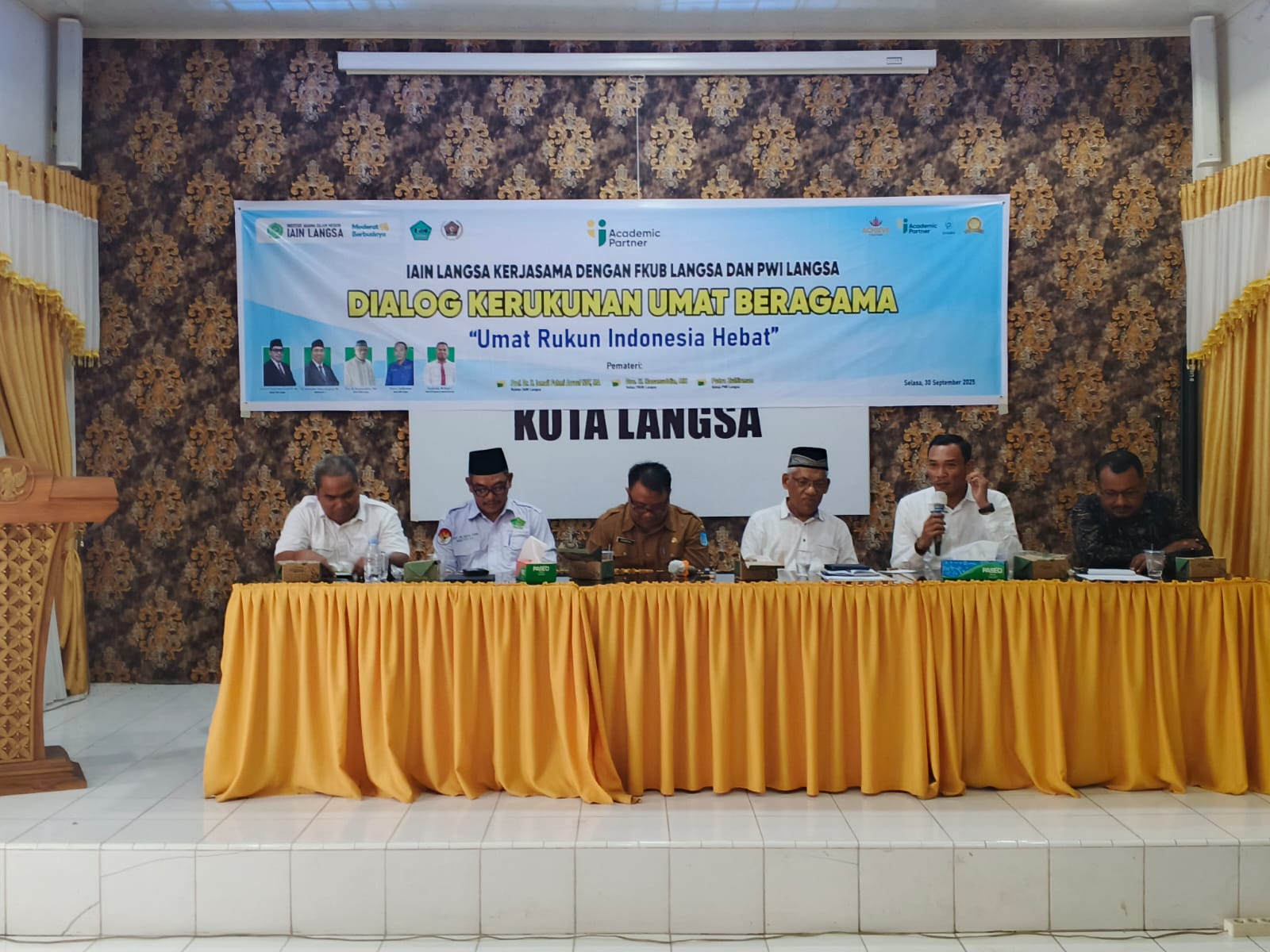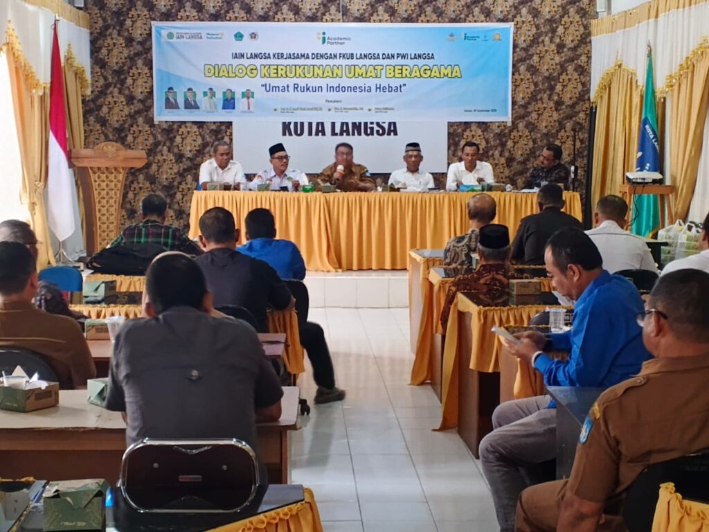 Kota Langsa – Institut Agama Islam Negeri (IAIN) Langsa bekerja sama dengan Forum Kerukunan Umat Beragama (FKUB) Kota Langsa dan Persatuan Wartawan Indonesia (PWI) Langsa menggelar Dialog Kerukunan Umat Beragama dengan tema “Umat Rukun Indonesia Hebat”, Selasa (30/09/2025).