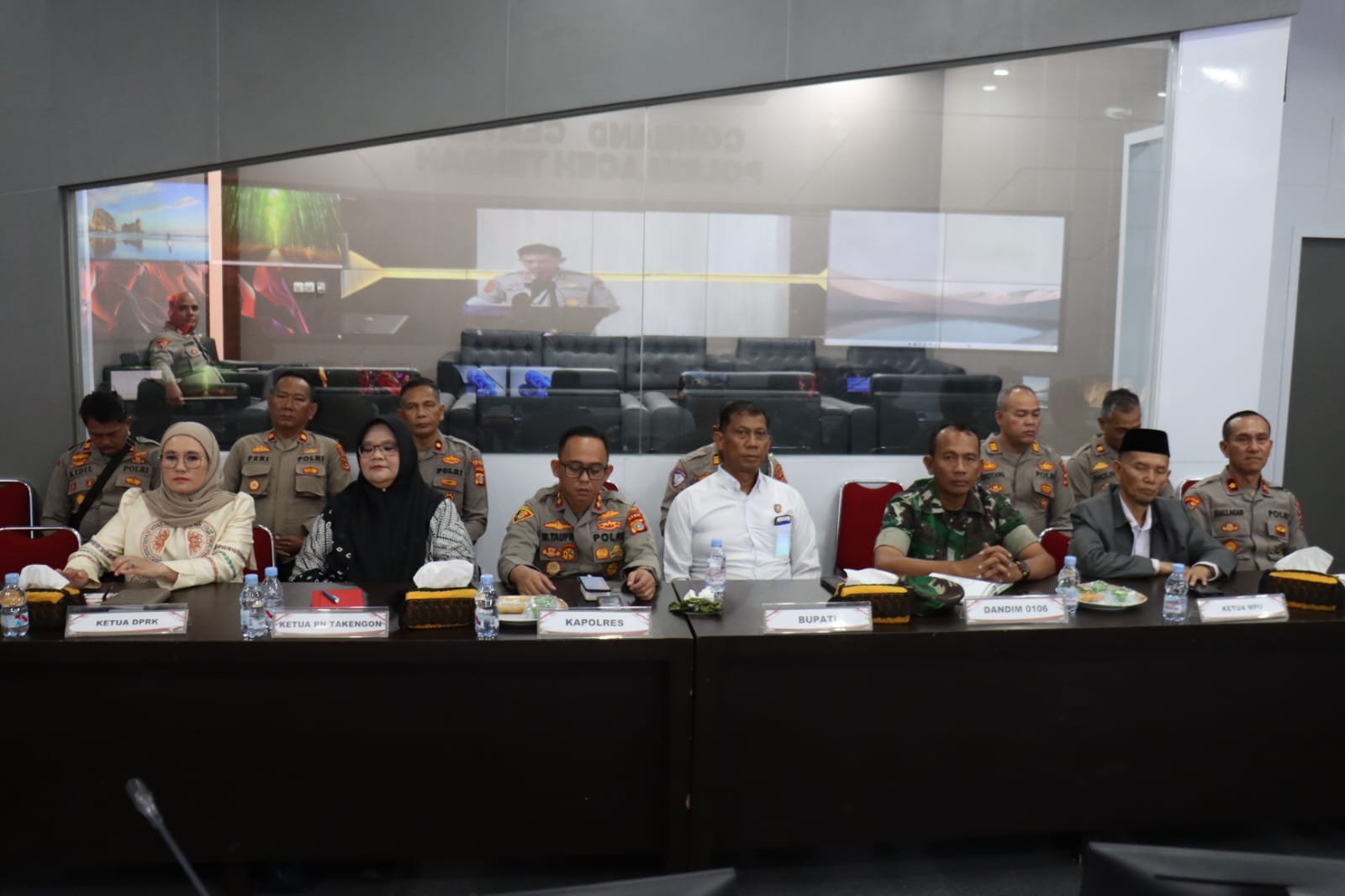 Bertempat di Ruang Command Center Polres Aceh Tengah, kegiatan tersebut turut dihadiri Dandim 0106 Aceh Tengah diwakili Pasiter, Ketua Pengadilan Negeri Takengon, Ketua DPRK Aceh Tengah, Ketua MPU Aceh Tengah, pejabat utama Polres, serta para Kapolsek dan Kapolsubsektor.