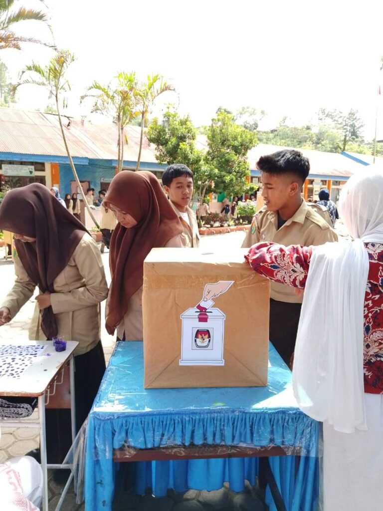 A1news.co.id|Takengon – SMA Negeri 4 Takengon gelar pesta demokrasi Pemilihan Ketua OSIS periode 2025-2026 yang digelar di lingkungan sekolah dengan tema “Saatnya gunakan hak pilihmu untuk memilih Ketua OSIS terbaik yang akan terpilih selama 1 tahun kedepan, Gunakan hak pilihmu dengan bijak”.