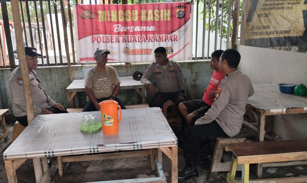 A1news.co.id | RIAU || Polsek Kuala Kampar Polres Pelalawan menggelar kegiatan Minggu Kasih pada Minggu pagi (5/10) di Warung Sdr. Ajo, Kelurahan Teluk Dalam, Kecamatan Kuala Kampar. Kegiatan yang dipimpin oleh Aipda Ismardi bersama personel Polsek ini diikuti oleh sekitar lima orang warga setempat.