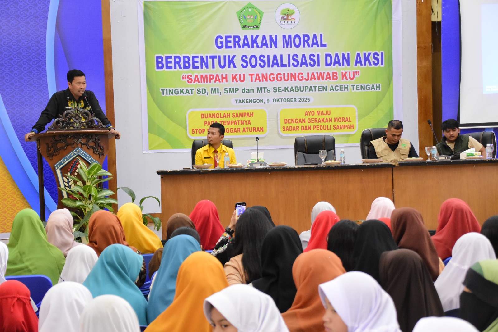 A1news.co.id|Takengon – Bupati Aceh Tengah, Haili Yoga, menghadiri kegiatan moral berbentuk sosialisasi dan aksi bertajuk “Sampah Ku Tanggungjawab Ku” di Oproom Setdakab setempat, pada Kamis (09/10/2025).