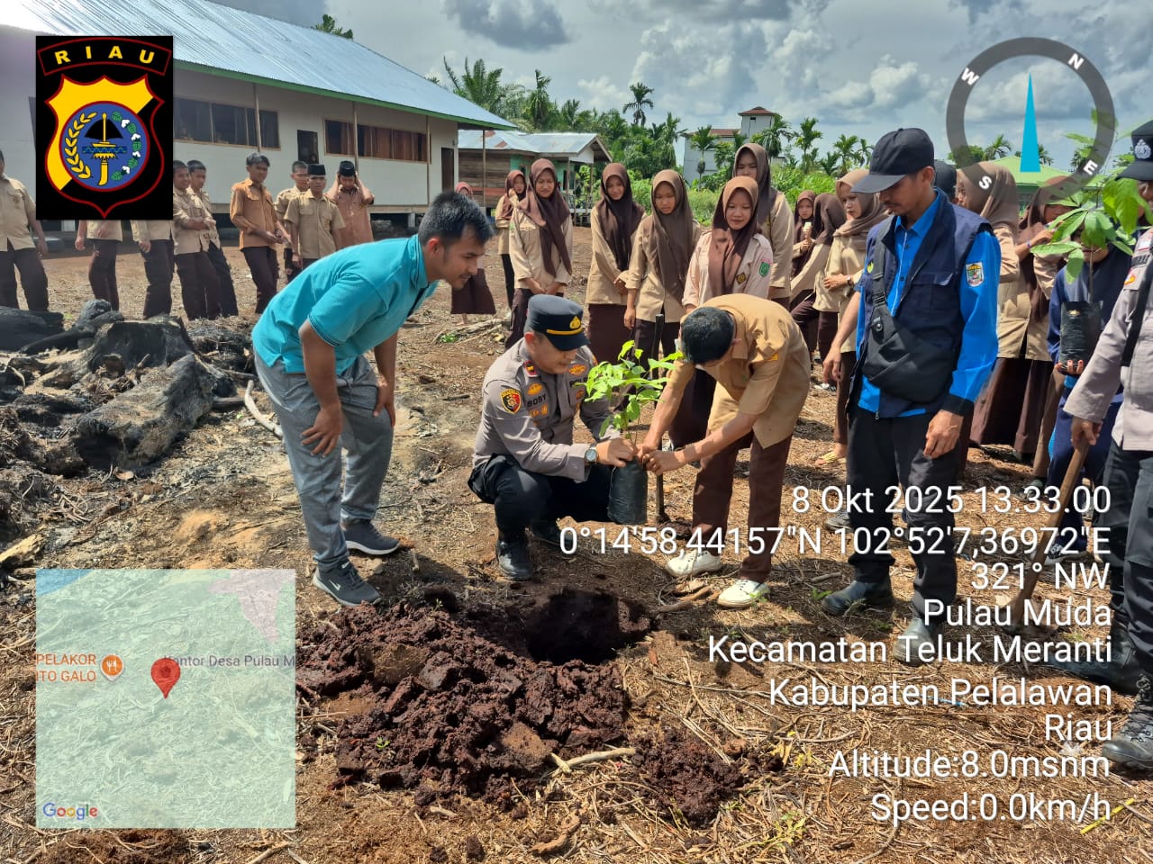 A1news.co.id | RIAU || Dalam rangka mendukung program pelestarian lingkungan dan implementasi kebijakan Green Policing, Polsek Teluk Meranti, Polres Pelalawan, menggelar kegiatan edukasi lingkungan dan penanaman bibit pohon di SMA Negeri 1 Teluk Meranti, Kelas Jauh Pulau Muda, Rabu, 8 Oktober 2025.