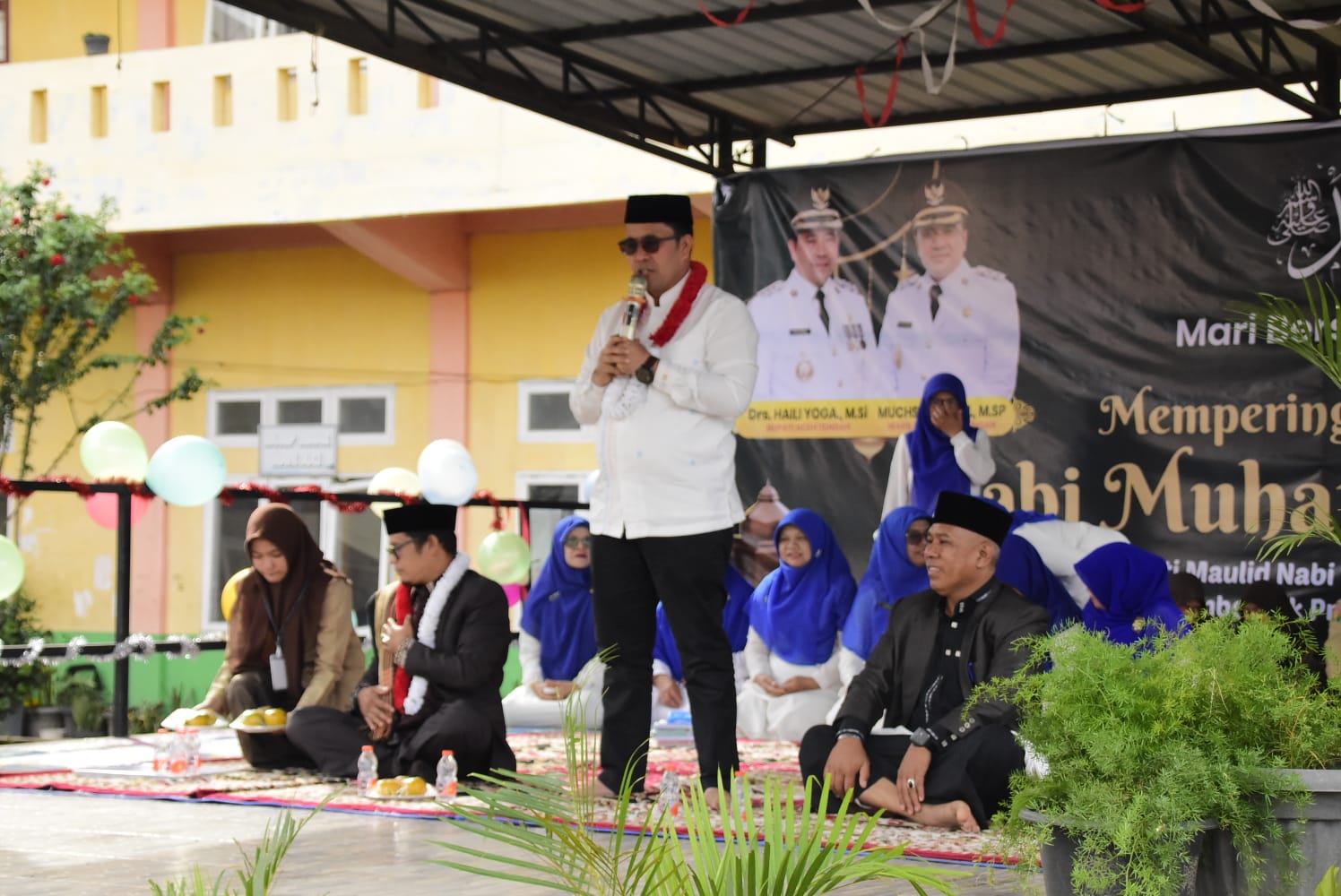 Dalam sambutannya, Bupati Haili Yoga memberikan pesan inspiratif kepada seluruh siswa agar menjadikan momentum Maulid sebagai pengingat pentingnya membangun karakter Islami sejak dini.