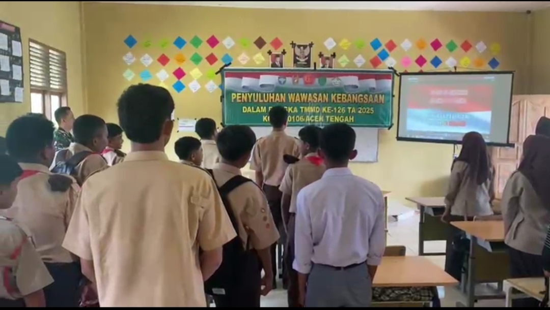 A1news.co.id|Takengon – Satgas TNI Manunggal Membangun Desa (TMMD) ke-126 Kodim 0106/Aceh Tengah memberikan penyuluhan bela negara dan wawasan kebangsaan kepada siswa SMAN 18 Takengon dan SMPN 8 Takengon, Jumat (10/10/2025).