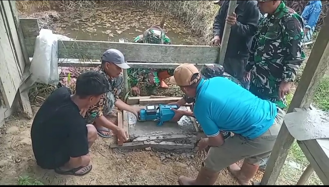 Pengerjaan dilakukan dengan semangat gotong royong antara personel TNI dan masyarakat.