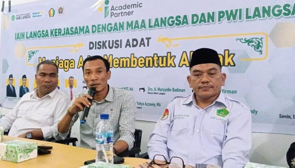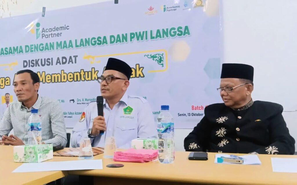 Kota Langsa – Institut Agama Islam Negeri (IAIN) bersama Majelis Adat Aceh (MAA) dan Persatuan Wartawan Indonesia (PWI) Langsa menggelar diskusi adat dengan tema menjaga adat membentuk akhlak di ruang rapat MAA setempat, Senin, 13 Oktober 2025.