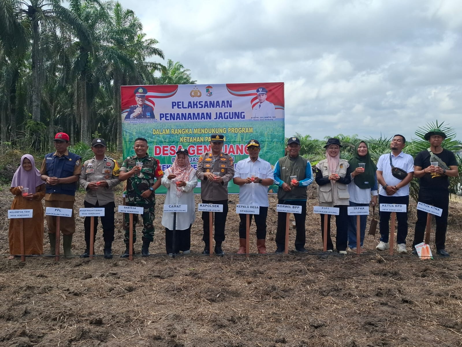 A1news.co.id | RIAU || Kapolsek Pangkalan Lesung, AKP Lambok Hendriko, S.H., bersama unsur Pemerintahan Desa Genduang, tokoh masyarakat, dan para pemuda setempat melaksanakan kegiatan Kick Off Penanaman Jagung Pipil sebagai bagian dari program ketahanan pangan nasional.