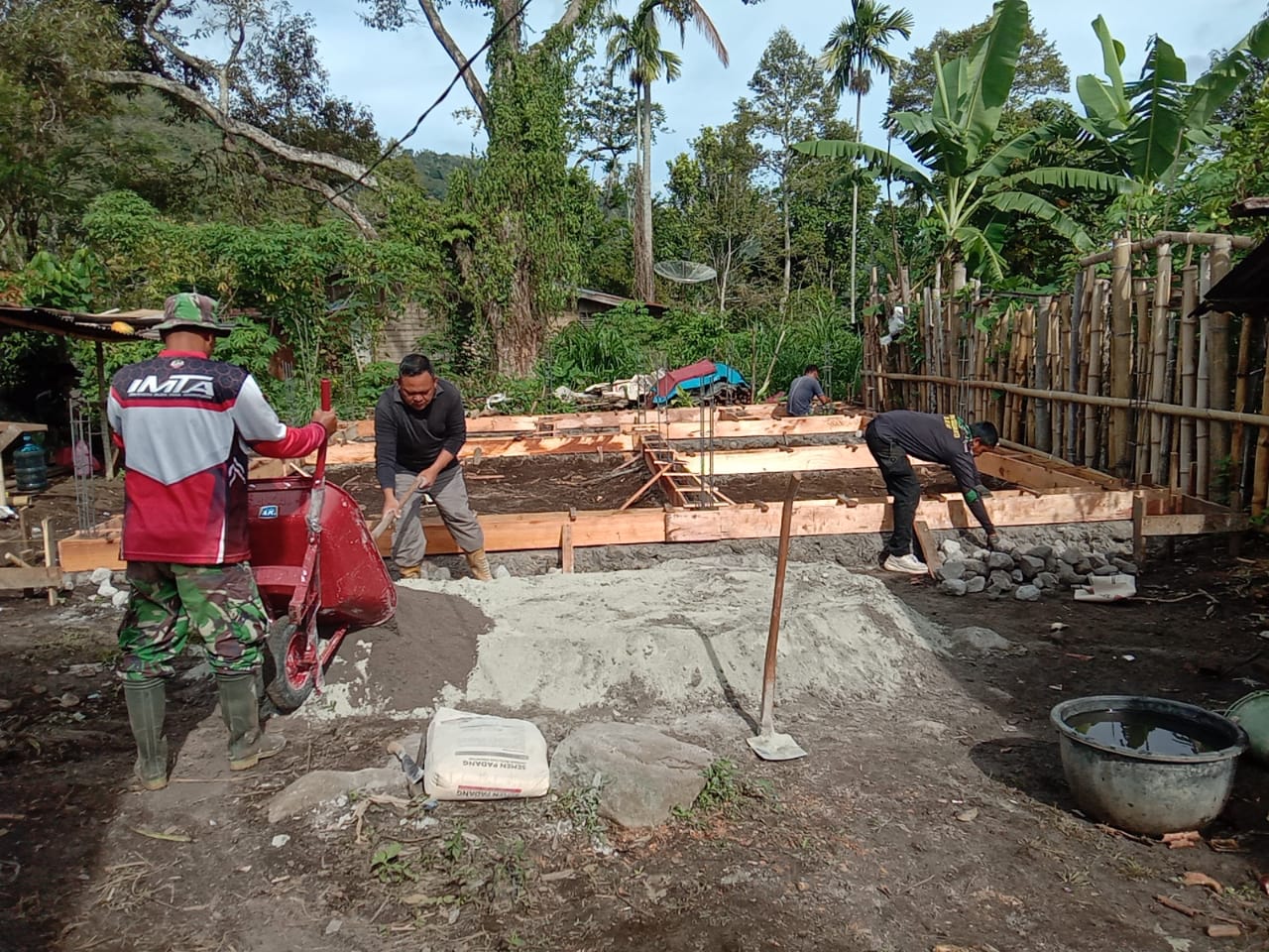A1news.co.id|Takengon – Progres pembangunan Rumah Tidak Layak Huni (RTLH) milik Kasmawati di Kampung Rutih, Kecamatan Silih Nara, Kabupaten Aceh Tengah, dalam rangka Program TNI Manunggal Membangun Desa (TMMD) ke-126 Kodim 0106/Aceh Tengah, satgas melakukan pengecoran pondasi.