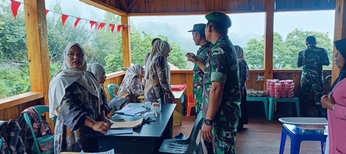 Dalam kegiatan ini, anggota Satgas turut membantu petugas kesehatan desa dalam memberikan pelayanan kesehatan kepada balita dan ibu hamil, serta mendukung kelancaran jalannya Posyandu.