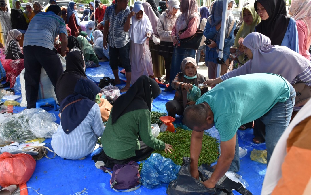 Tampak antusias, masyarakat yang berdatangan sebelum dibukanya Gerakan Pangan Murah sudah memadati lokasi kegiatan yang digelar Pemerintah Kota Langsa melalui Dinas Pangan Pertanian Kelautan dan Perikanan.