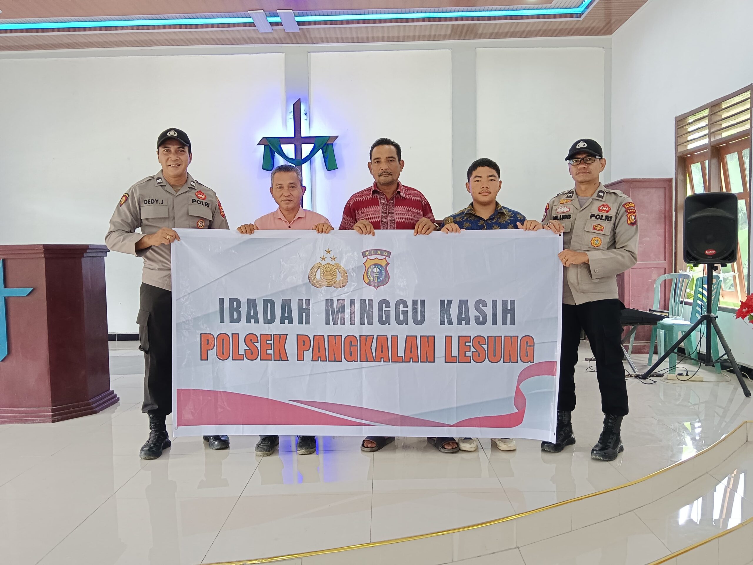 A1news.co.id | RIAU || 19 Oktober 2025  Polsek Pangkalan Lesung menggelar kegiatan Ibadah Minggu Kasih di Gereja Methodis Efrat Km. 40, Kelurahan Pangkalan Lesung, Kecamatan Pangkalan Lesung, Minggu (19/10). Kegiatan ini dipimpin oleh Isok 1 Polsek, AIPTU Dedy Junaidi, didampingi anggota Polsek.