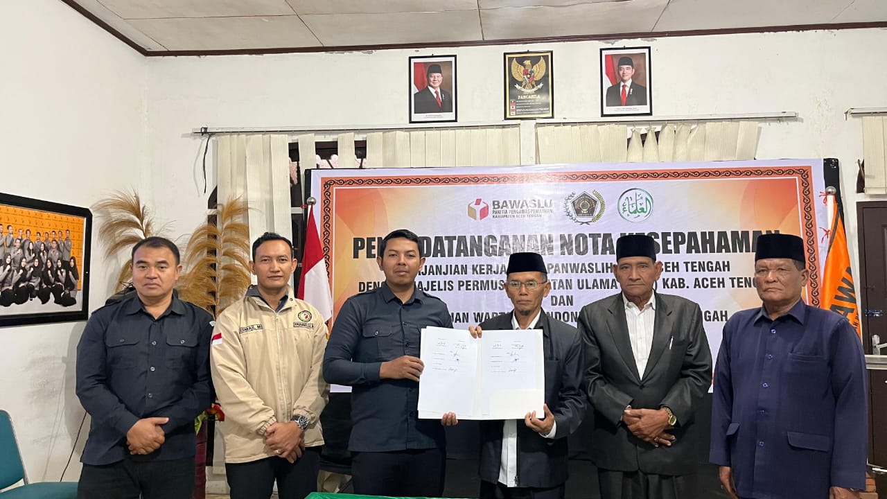 MoU yang ditanda tangani bersama Ketua bawaslu Aceh Tengah bersama majelis permusyawaratan Ulama (MPU) Aceh Tengah pada hari senin 20 Oktober 2025 dihadapan para saksi.