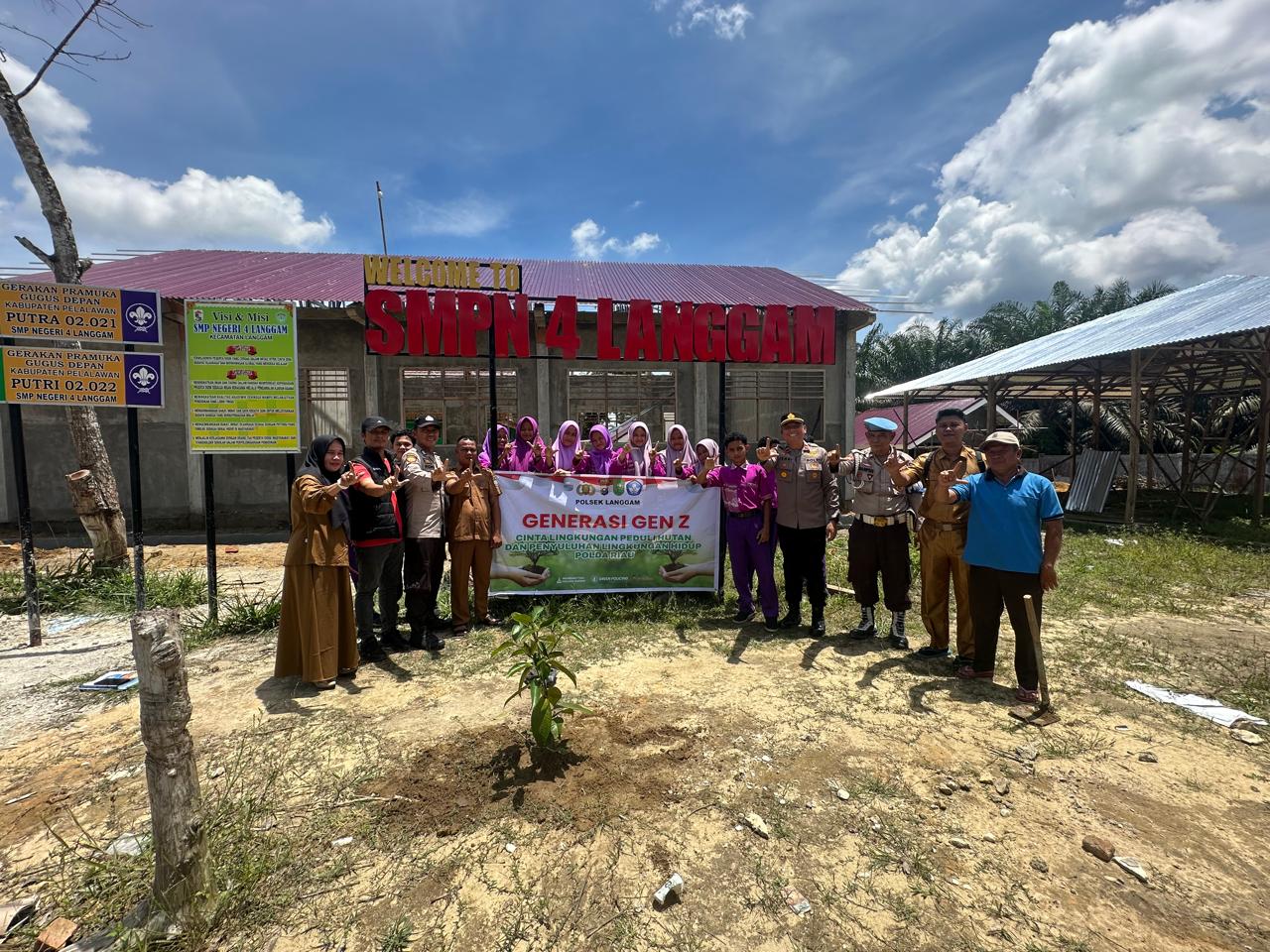 A1news.co.id | RIAU || Kepolisian Sektor (Polsek) Langgam, Polres Pelalawan, melaksanakan kegiatan penanaman bibit pohon di lingkungan SMP Negeri 4 Langgam pada Selasa, 21 Oktober 2025. Kegiatan ini merupakan bagian dari dukungan terhadap program Kapolda Riau dalam pelestarian lingkungan dan penghijauan.