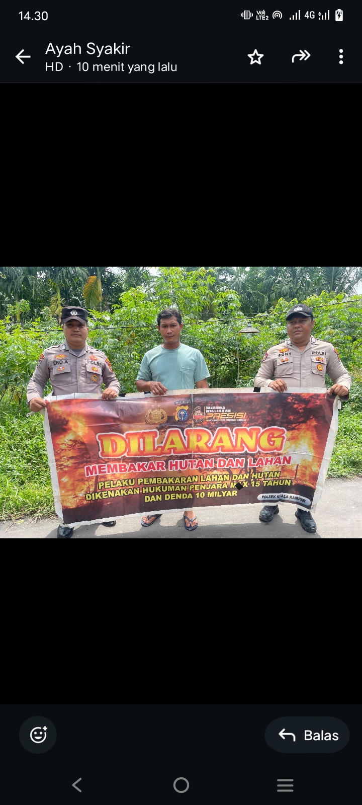 A1news.co.id | RIAU || Kepolisian Sektor Kuala Kampar, Polres Pelalawan, melaksanakan kegiatan sosialisasi dan penyebaran Maklumat Kapolda Riau terkait pencegahan kebakaran hutan dan lahan (karhutla) di wilayah Kecamatan Kuala Kampar, Selasa, 21 Oktober 2025.