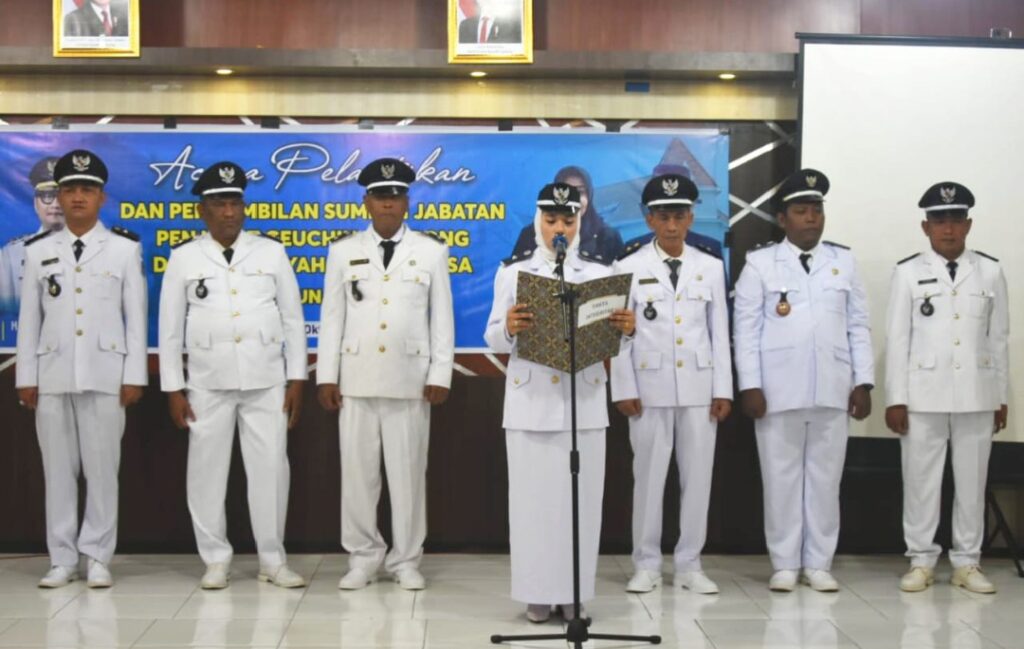 Adapun Pj Geuchik yang dilantik yakni Gampong Sungai Pauh Firdaus Junaidi, S.Pt, Gampong Buket Pulo Zulhamsyah, Gampong Sukajadi Makmur Nazar Nurfadli, A.Md, Pel, Gampong Seulalah Elya Tulus, SE, Gampong Pondok Keumuning Paino, Gampong Batee Puteh M. Harun, dan Gampong Baro Elsa Asrina Poetri, S.IP,.