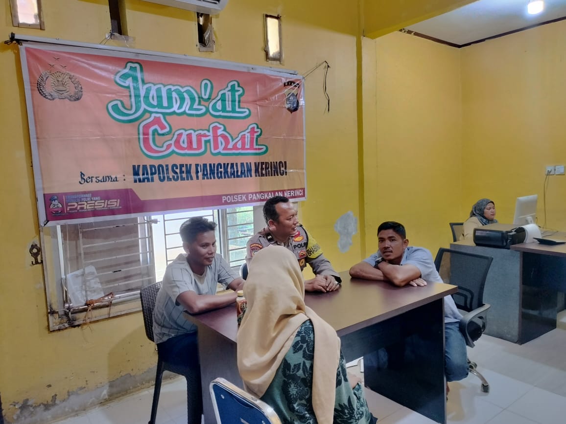 Menurut Kapolsek Pangkalan Kerinci, AKP Shilton, S.I.K., M.H., kegiatan Jumat Curhat rutin digelar sebagai sarana komunikasi dua arah antara masyarakat dan Polri untuk menjaga keamanan dan ketertiban masyarakat (kamtibmas) di wilayah hukum Polsek Pangkalan Kerinci.