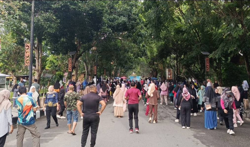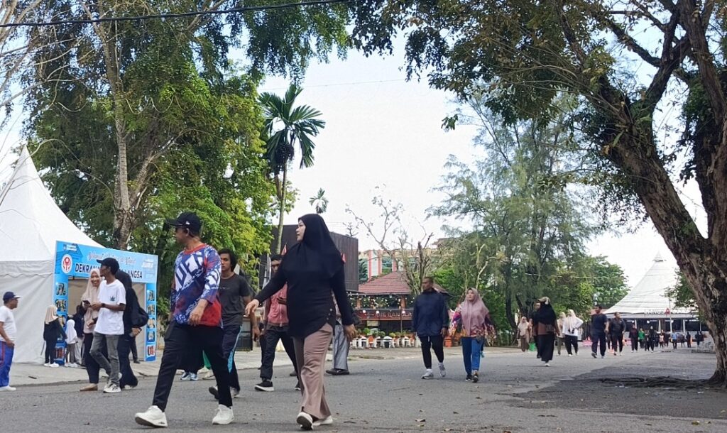 Kota Langsa – Tampak stand Dewan Kerajinan Nasional Daerah (Dekranasda) Kota Langsa program Langsa Juara “Car Free Day”, masyarakat pun antusias menikmati suasana asri tanpa polusi kendaraan di seputaran lapangan merdeka, Minggu (26/10/2025).