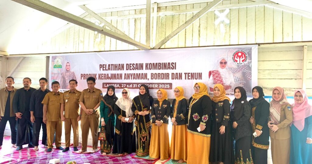 Kota Langsa – Ketua Dewan Kerajinan Nasional Daerah (Dekranasda) Kota Langsa, Ny Devi Ari Atmana Sentana, membuka kegiatan pelatihan desain kombinasi produk kerajinan anyaman, bordir dan tenun, mulai 27 hingga 31 Oktober 2025.