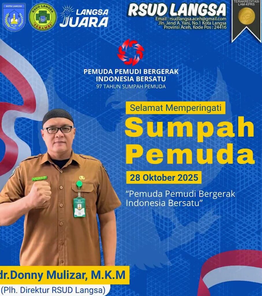Dari meja kecil ini… Aku menulis dengan bangga dan penuh cinta. Selamat Hari Sumpah Pemuda ke-97, Langsa, 28 Oktober 2025. Direktur RSUD Langsa, dr. Donny Mulizar MKM.