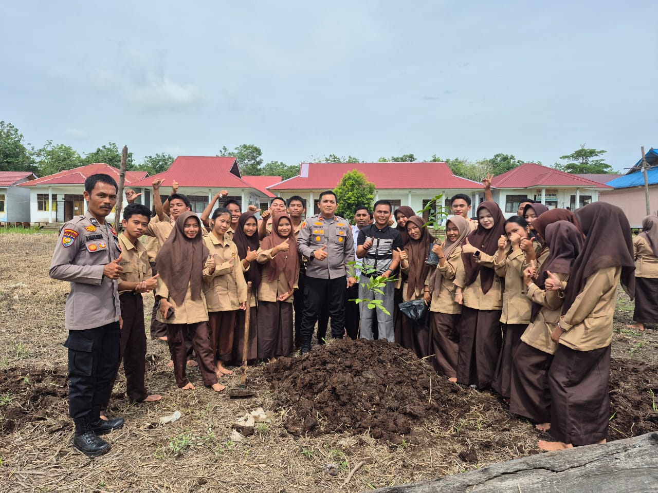 A1news.co.id | RIAU || Polsek Teluk Meranti menggelar kegiatan sosialisasi Green Policing sekaligus penanaman bibit pohon di SMAN 3 Desa Kuala Panduk, Kecamatan Teluk Meranti, Kamis (30/10/2025). Kegiatan ini menjadi bagian dari Minggu Green Policing yang digagas Polda Riau sebagai upaya edukasi dan penghijauan lingkungan.