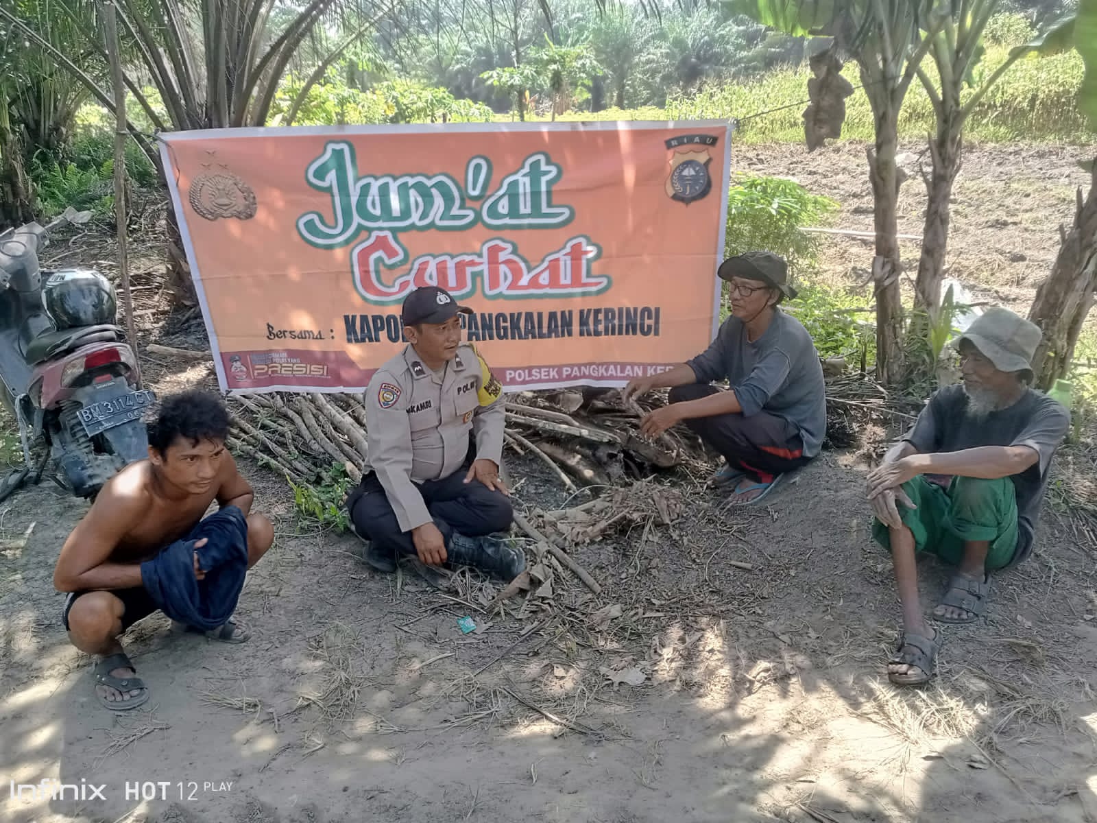 A1news.co.id | RIAU || Polsek Pangkalan Kerinci menggelar kegiatan Jumat Curhat di Hangtuah 10, Desa Makmur, Jumat (31/10/2025) pagi. Kegiatan ini menjadi wadah bagi masyarakat untuk menyampaikan keluhan, saran, dan masukan langsung kepada pihak kepolisian guna menjaga keamanan dan ketertiban masyarakat (Kamtibmas).