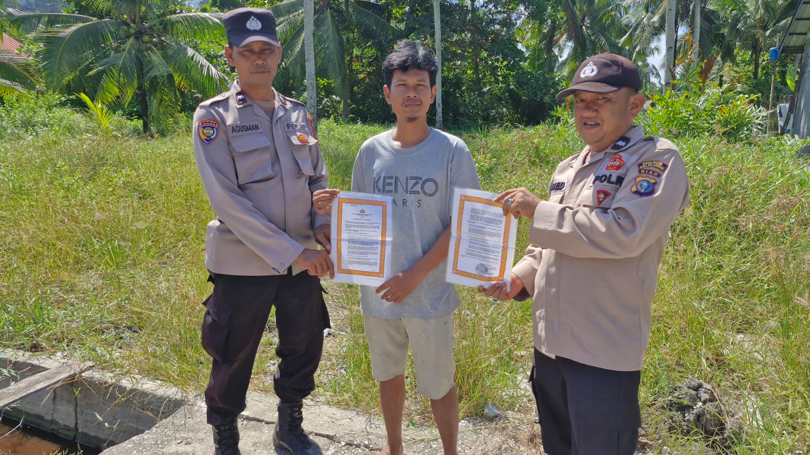 A1news.co.id | RIAU || Polsek Kuala Kampar menggelar kegiatan sosialisasi dan penyebaran maklumat Kapolda Riau terkait antisipasi kebakaran hutan dan lahan (Karhutla), Sabtu (01/11/2025) pagi, di Parit Melur, Kelurahan Teluk Dalam, Kecamatan Kuala Kampar.