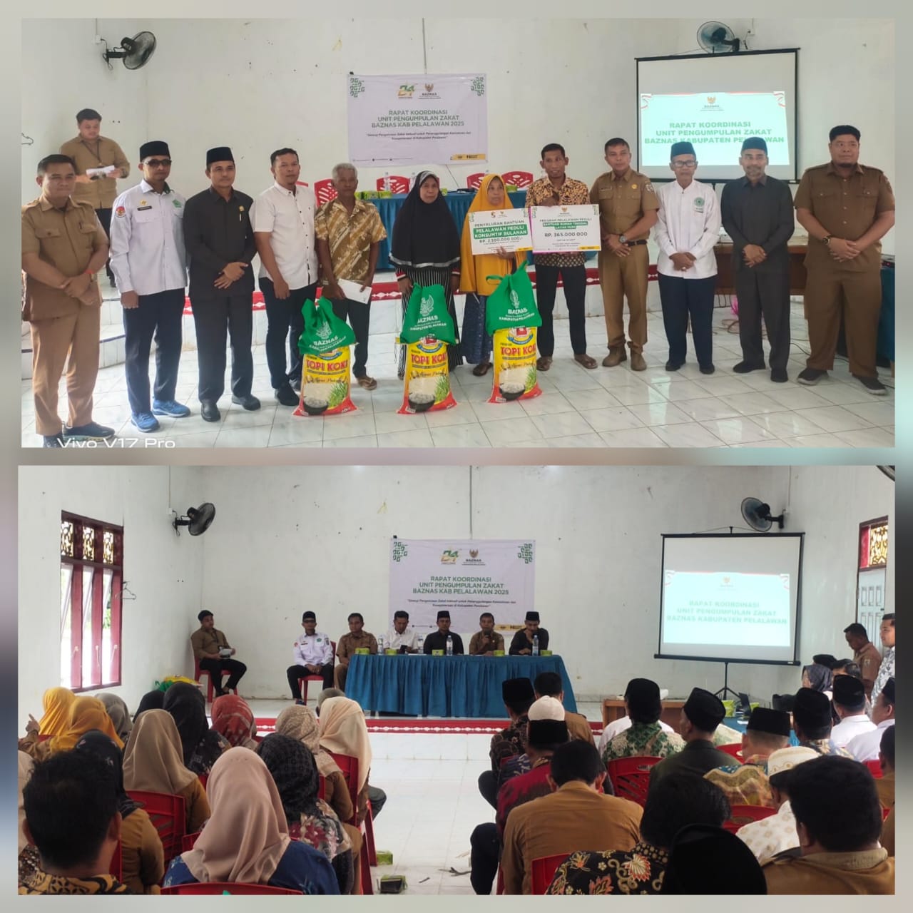 Dalam rapat tersebut, Baznas Kabupaten Pelalawan juga menyerahkan bantuan rumah layak huni bagi 21 warga Desa Balam Merah serta bantuan paket sembako untuk warga Kelurahan Pangkalan Bunut. Penyerahan dilakukan secara simbolis oleh perwakilan Baznas sebagai bentuk kepedulian sosial terhadap masyarakat yang membutuhkan.