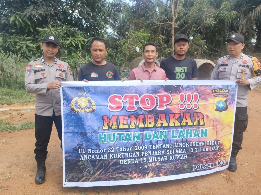 A1news.co.id | RIAU || Upaya pencegahan kebakaran hutan dan lahan (Karhutla) terus dilakukan jajaran Polsek Ukui, Kabupaten Pelalawan, Riau. Pada Senin (3/11/2025), personel Polsek bersama Bhabinkamtibmas melaksanakan patroli dan memberikan himbauan langsung kepada masyarakat di sejumlah titik rawan kebakaran di wilayah Kecamatan Ukui.