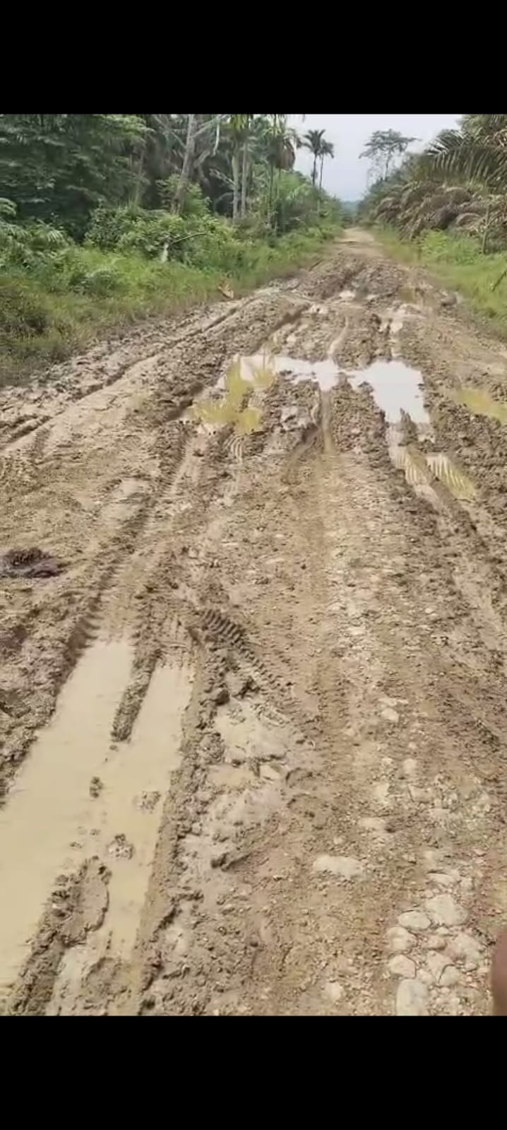 Jalan ini sangat memprihatinkan, potret jalan yang sangat tidak layak di sebut jalan karna sudah seperti sawah yang baru di bajak oleh kerbau atau hentraktor . lumpur dan genangan air yang membuatnya mustahil dilewati oleh kendaraan roda dua maupun roda empat.