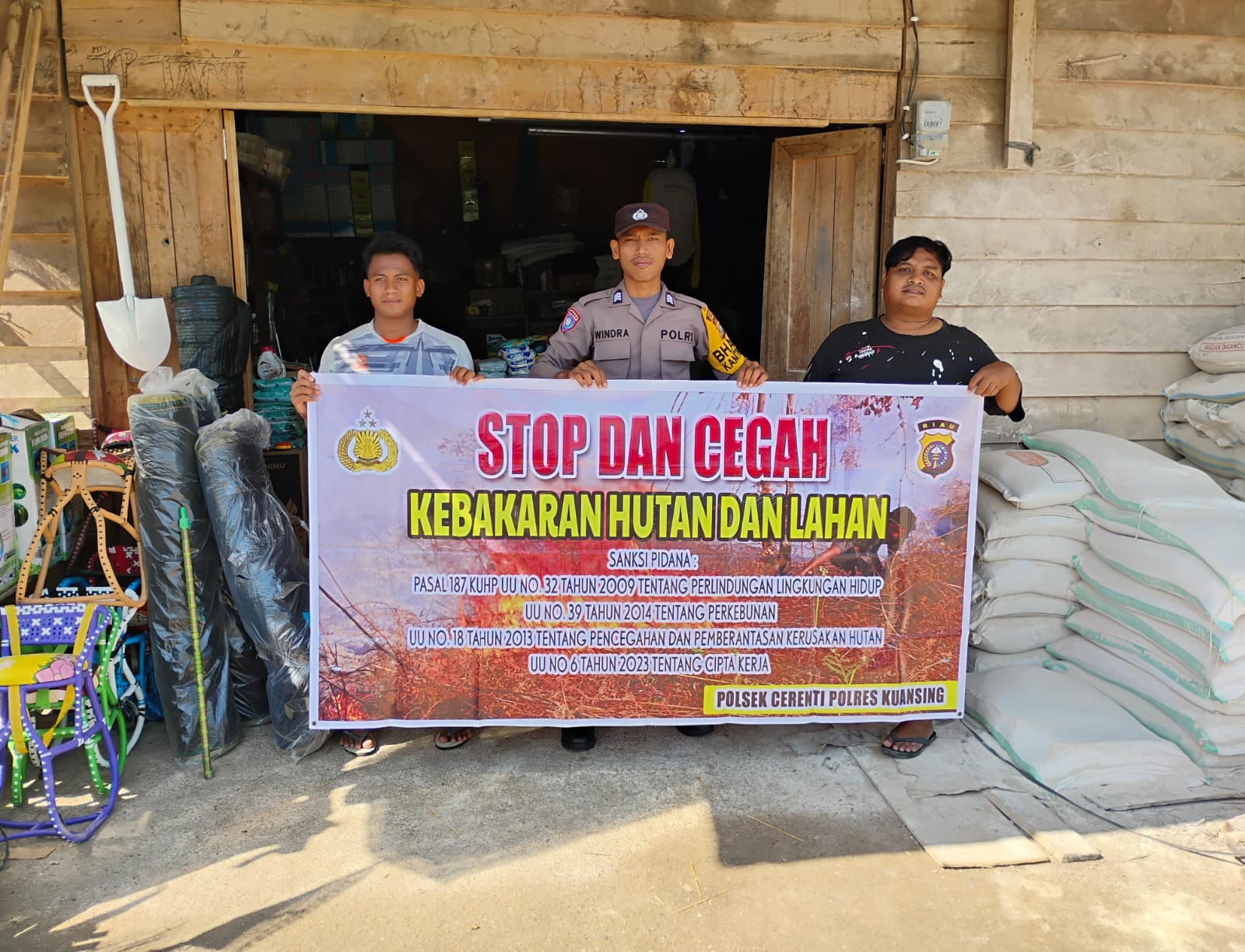 Sementara itu, Polsek Cerenti melaksanakan sosialisasi dan penyebaran maklumat Kapolda Riau kepada masyarakat Desa Kampung Baru, Kecamatan Cerenti, oleh Brigadir Windrahadi. Selain penyuluhan langsung, petugas juga melakukan pemasangan spanduk dan patroli ke daerah rawan guna meningkatkan kesadaran masyarakat agar tidak membuka lahan dengan cara membakar.