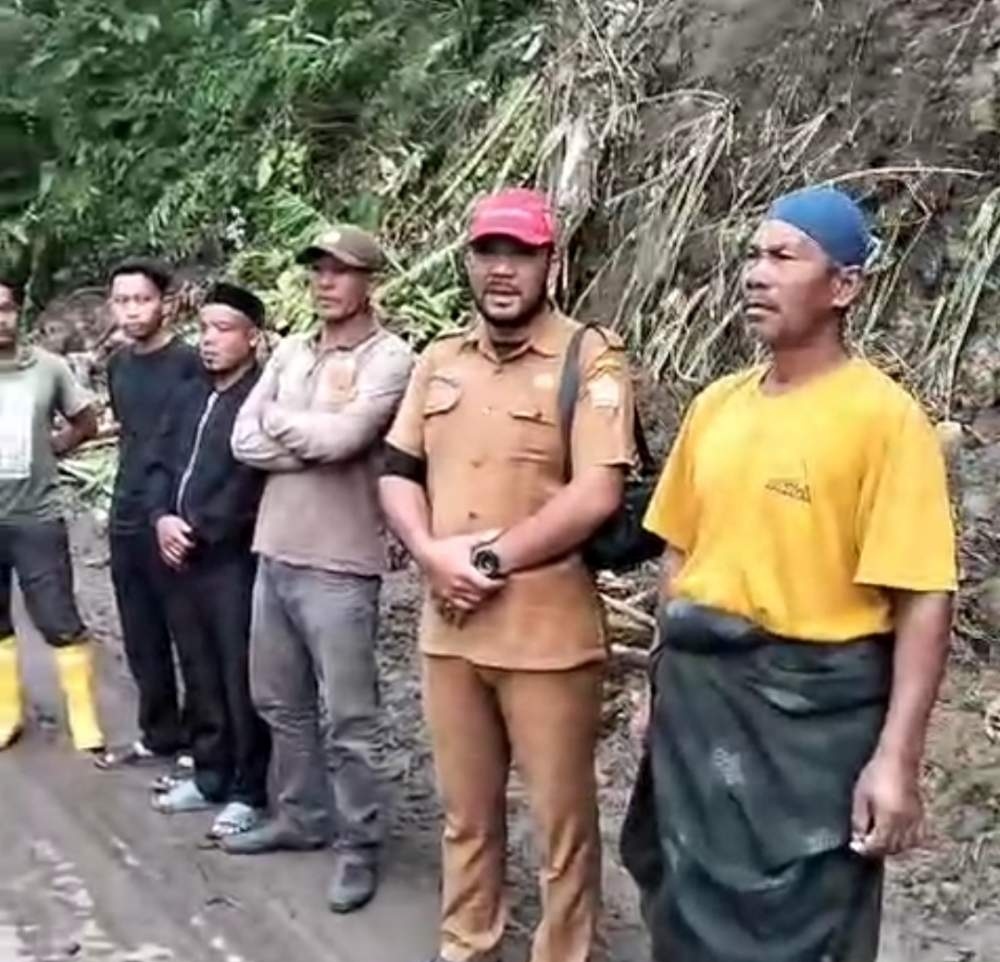 Reje Kampung Reremal Ramli menyampaikan hari terjadi longsor jalan Kampung Jaluk – Tapak Moge tepatnya di Dusun Peseng.
