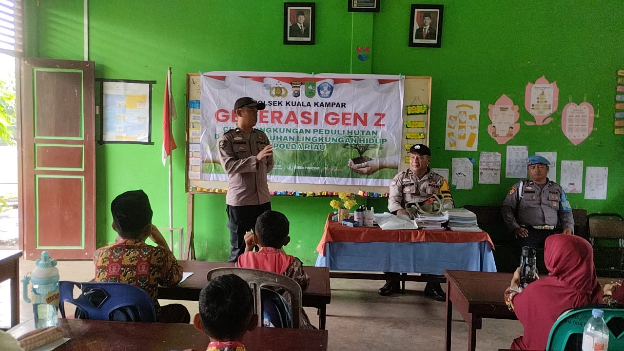 A1news.co.id | RIAU || Polres Pelalawan melalui Polsek Kuala Kampar melaksanakan kegiatan edukasi Green Policing dan penanaman bibit pohon di SDN 004 Kelurahan Teluk Dalam, Kecamatan Kuala Kampar, Selasa (4/11/2025) pukul 10.00 WIB.