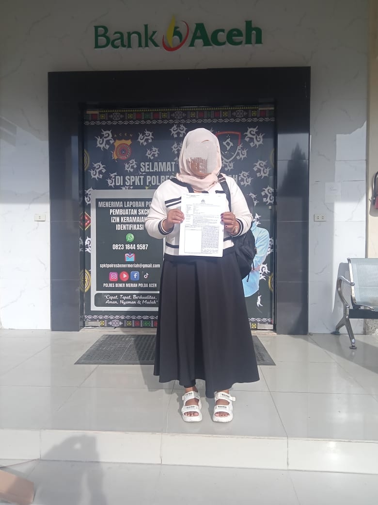 Laporan tersebut tertuang dalam Laporan Polisi Nomor: LP/B/68/XI/2025/SPKT/POLRES BENER MERIAH/POLDA ACEH, tanggal 05 November 2025. Perkara ini diduga melanggar Pasal 352 Kitab Undang-Undang Hukum Pidana (KUHP) tentang penganiayaan.