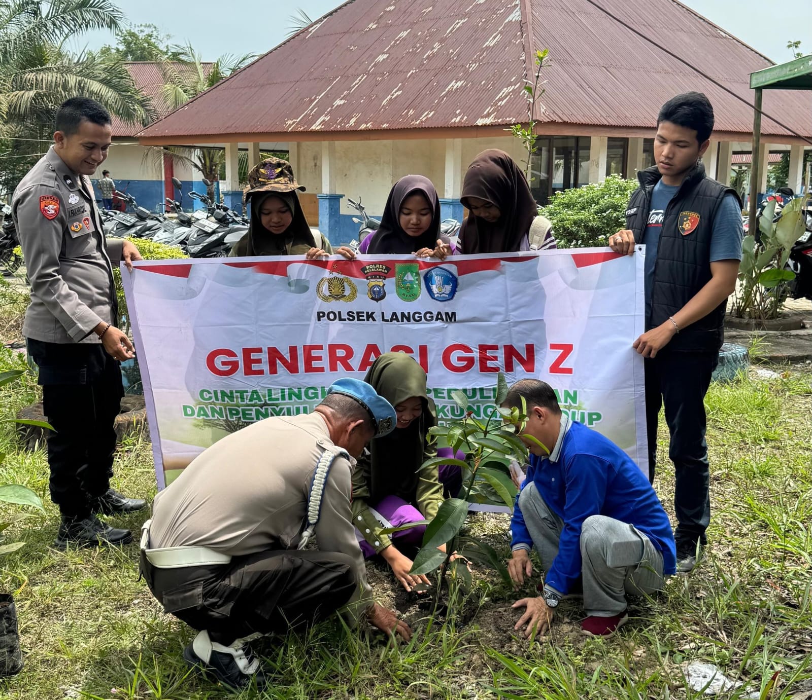 A1news.co.id | RIAU || Polsek Langgam, Polres Pelalawan, melaksanakan kegiatan penanaman bibit pohon di lingkungan SMP Negeri 3 Langgam, Rabu, 5 November 2025, pukul 10.30 WIB. Kegiatan ini bagian dari dukungan Polri terhadap program penghijauan dan kelestarian lingkungan yang dicanangkan Kapolda Riau.