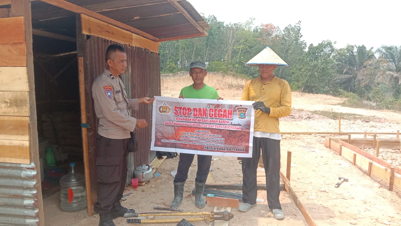 Di wilayah Polsek Kuantan Tengah, Aipda Sukmajaya melaksanakan patroli dan sambang warga sekaligus menyampaikan Maklumat Kapolda Riau tentang larangan membakar hutan dan lahan.