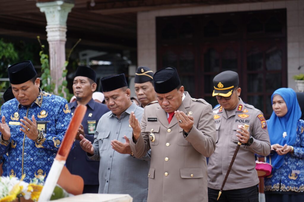 Upacara yang dimulai pukul 08.00 WIB ini dipimpin langsung oleh Bupati Kuansing Dr. H. Suhardiman Amby, M.M. Kegiatan tersebut turut dihadiri oleh jajaran Forkopimda, di antaranya Kapolres Kuansing AKBP R. Ricky Pratidiningrat, S.I.K., M.H., Pabung Mayor Inf. Legimin mewakili Dandim 0302/Inhu, Kajari Kuansing Muhammad Harun Sunadi, S.E., S.H., M.H., Ketua DPRD Kuansing Juprizal, S.E., M.Si., serta unsur pengadilan, Kemenag, pejabat Pemkab Kuansing, personel Polres Kuansing, dan ASN di lingkungan Pemerintah Kabupaten Kuansing.