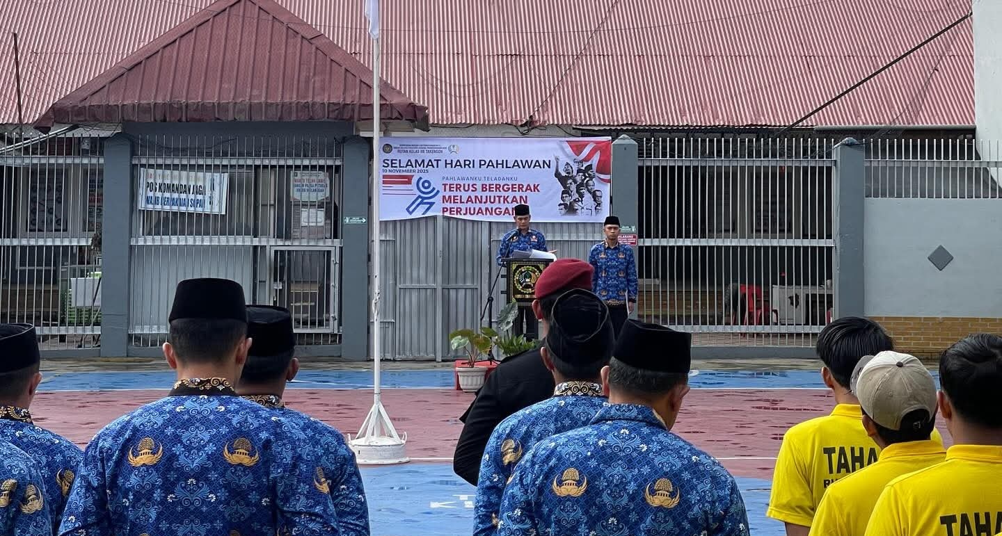 A1news.co.id|Takengon – Rumah Tahanan Negara (Rutan) Kelas IIB Takengon menggelar upacara pengibaran bendera dalam rangka memperingati Hari Pahlawan Tahun 2025 dengan tema “Pahlawanku Teladanku, Terus Bergerak Melanjutkan Perjuangan”, bertempat di lapangan blok hunian Rutan Takengon.