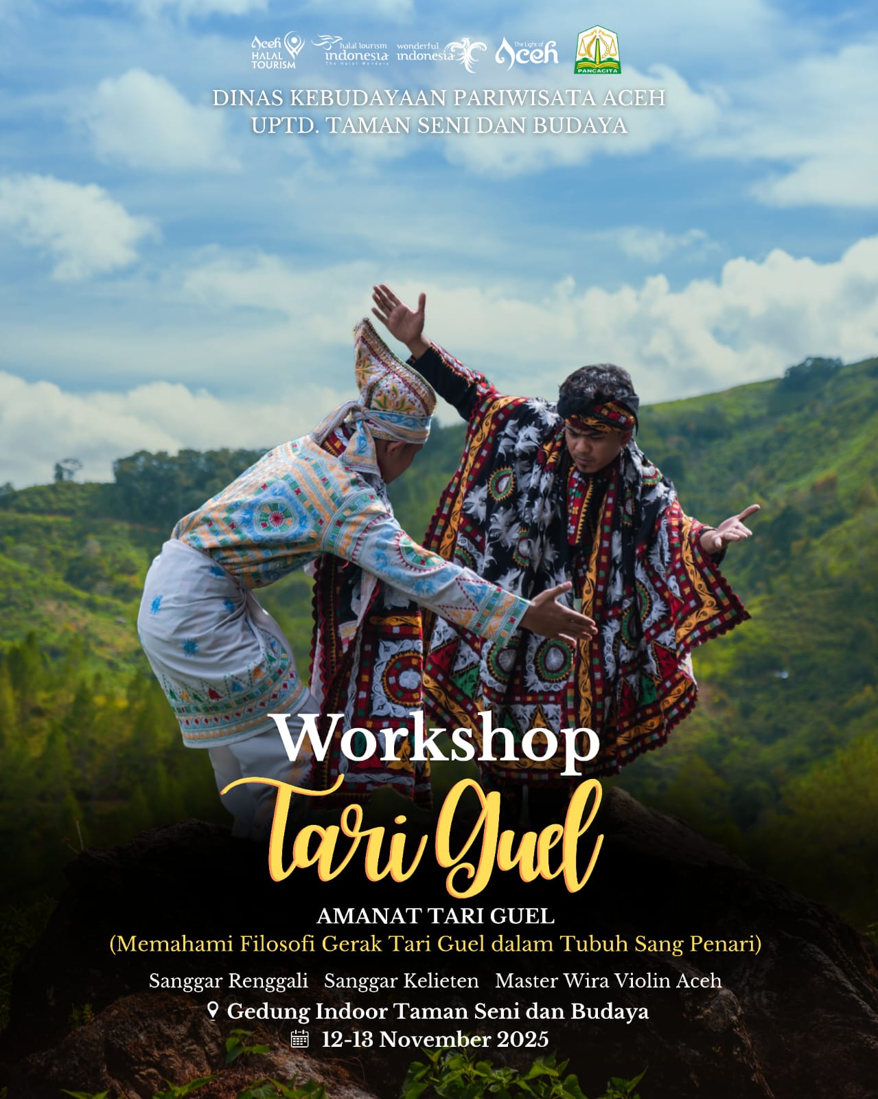 Untuk itu, Workshop seni rupa, pertunjukan, seni media Tentang tari Guel Digelar. Mengangkat tema “Amanat Tari Guel” yang bertujuan untuk Memahami Filosofi Tari Guel dalam gerak sang penari.