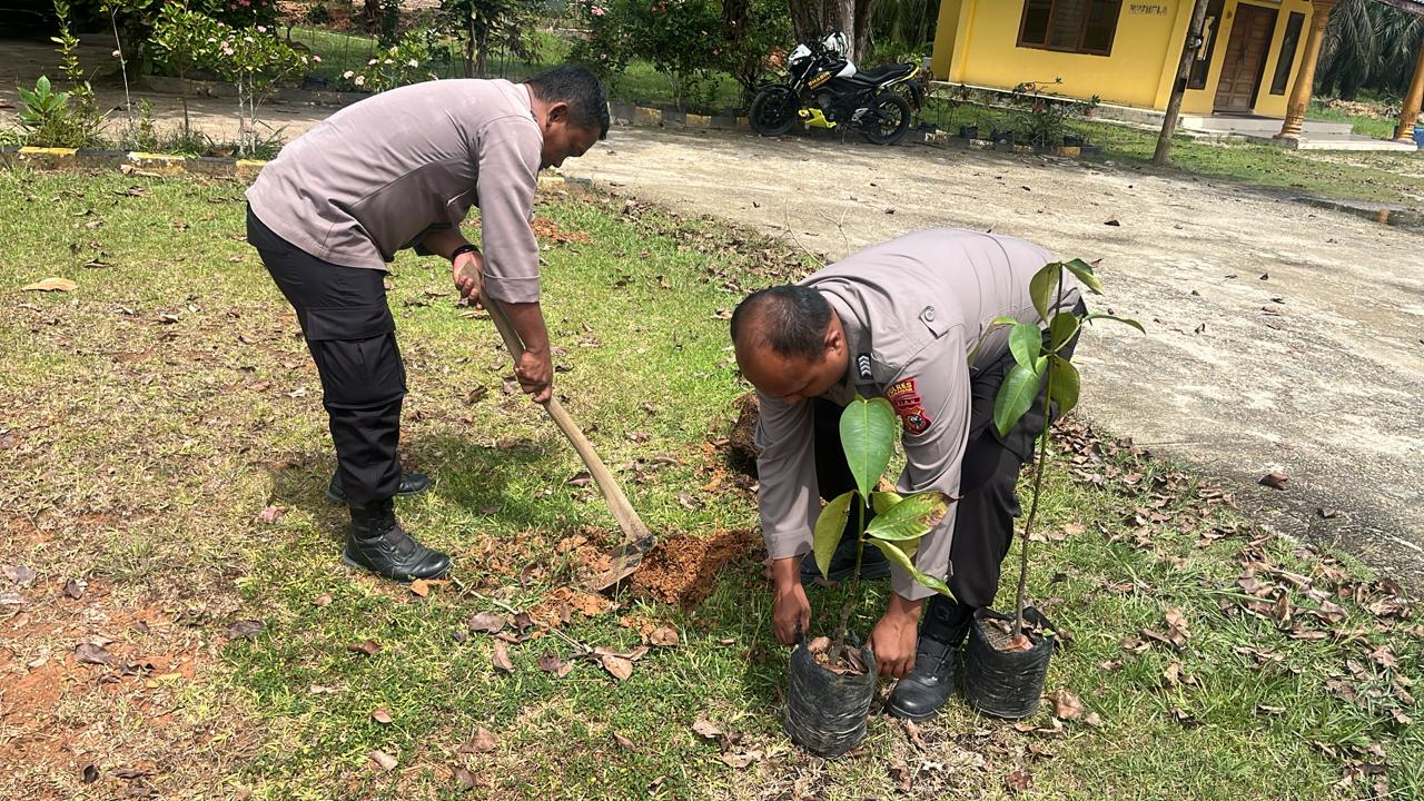 Polsek Pangkalan Kerinci Tanam Bibit Pohon, Dukung Program Penghijauan Kapolda Riau