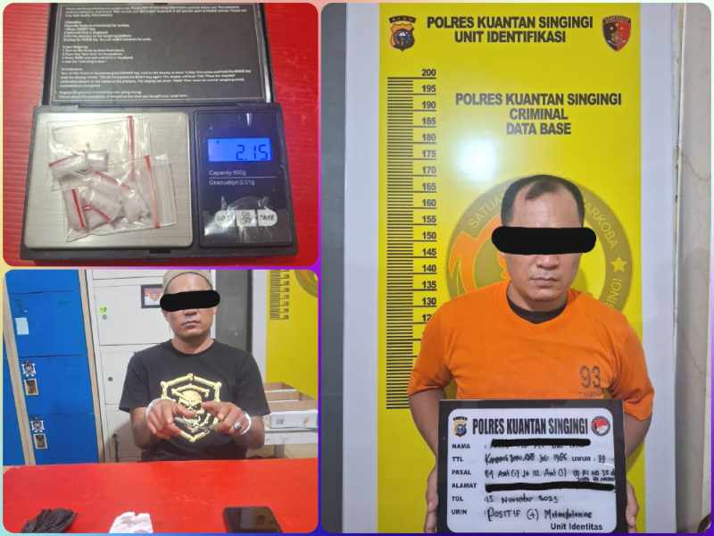- Tersangka MA alias A (39) kini diamankan di Polres Kuantan Singingi bersama barang bukti berupa satu paket sabu, plastik hitam, tisu pembungkus, dan handphone Samsung A06. Hasil tes urine menunjukkan pelaku positif amphetamine. Ia akan diproses sesuai dengan Pasal 114 ayat (1) Jo Pasal 112 ayat (1) UU Nomor 35 Tahun 2009 tentang Narkotika.